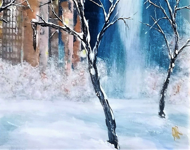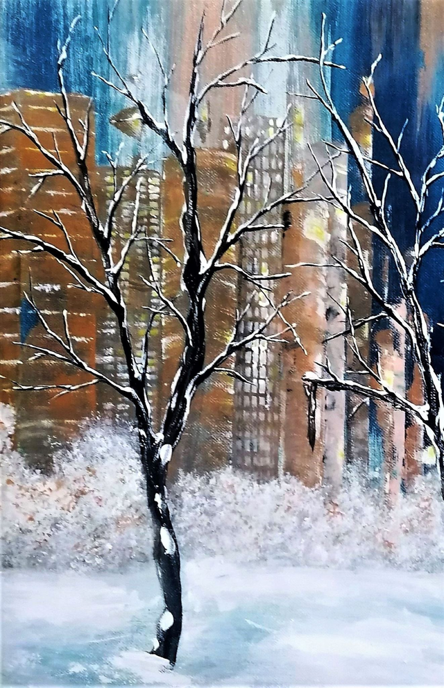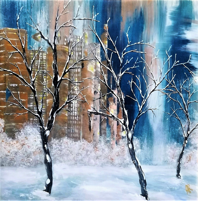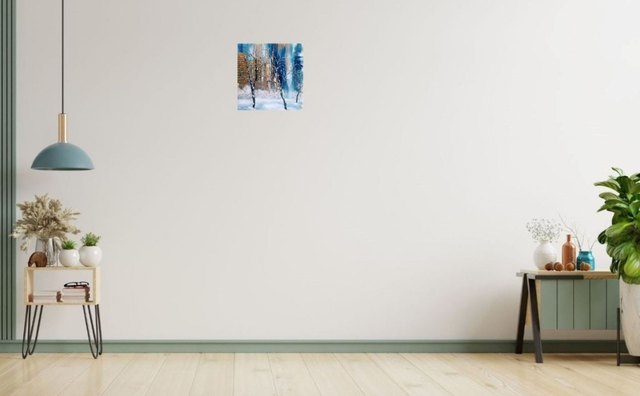 Acrylique sur toile tendue sur une planche de bois de 31x31x1 cm. Finition vernis.
