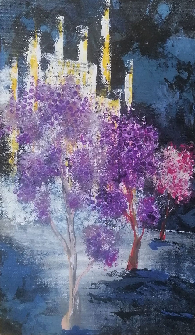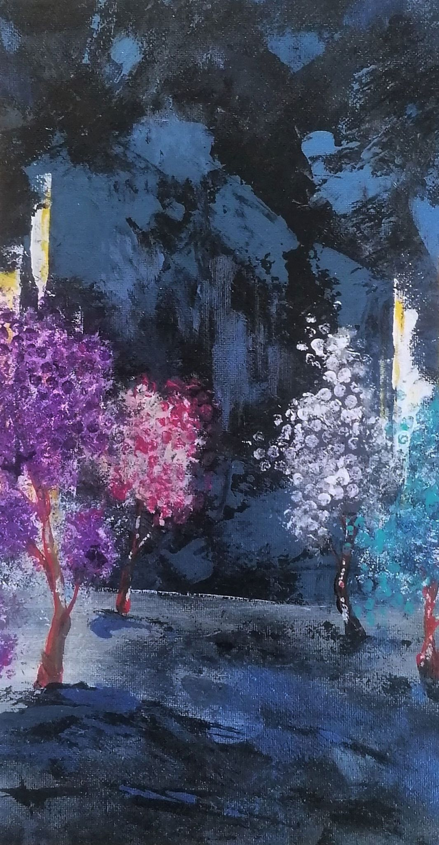 Acrylic on canvas stretched over a 30x30x1 cm wooden board. Varnish finish.