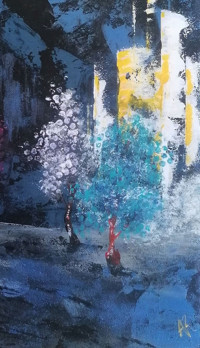 Acrylique sur toile tendue sur une planche de bois de 30x30x1 cm. Finition vernis.