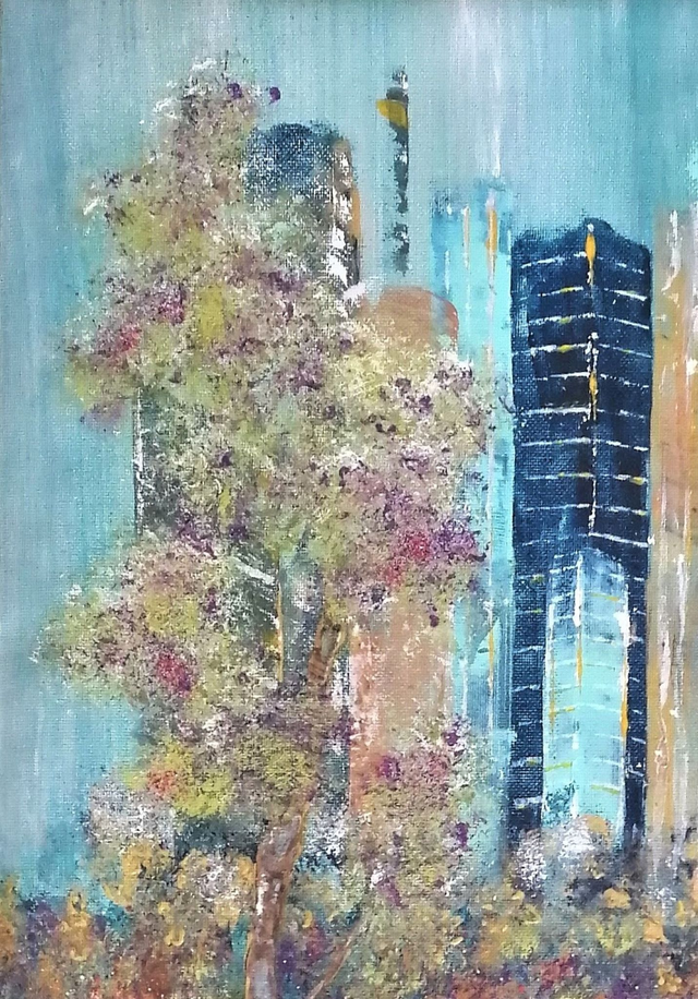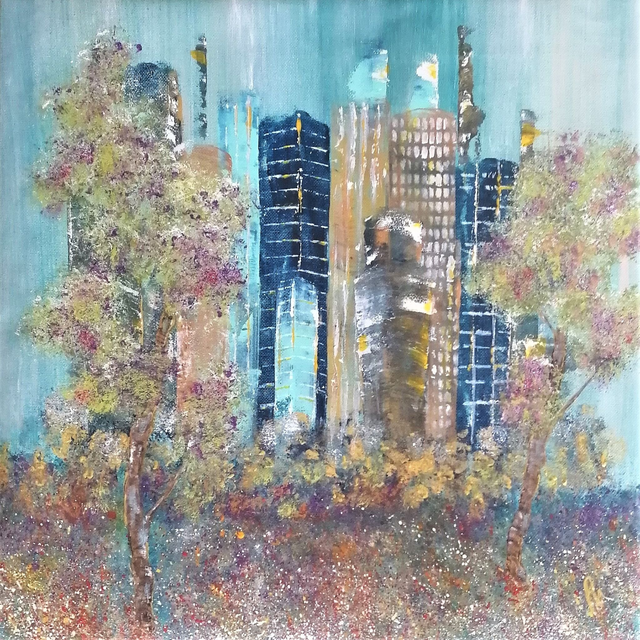 Acrylique sur toile tendue sur chassis de 32x32x1 cm. Finition vernis.