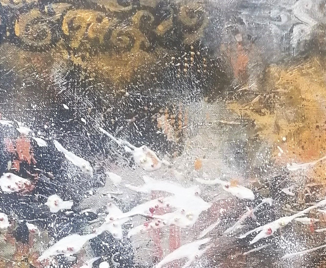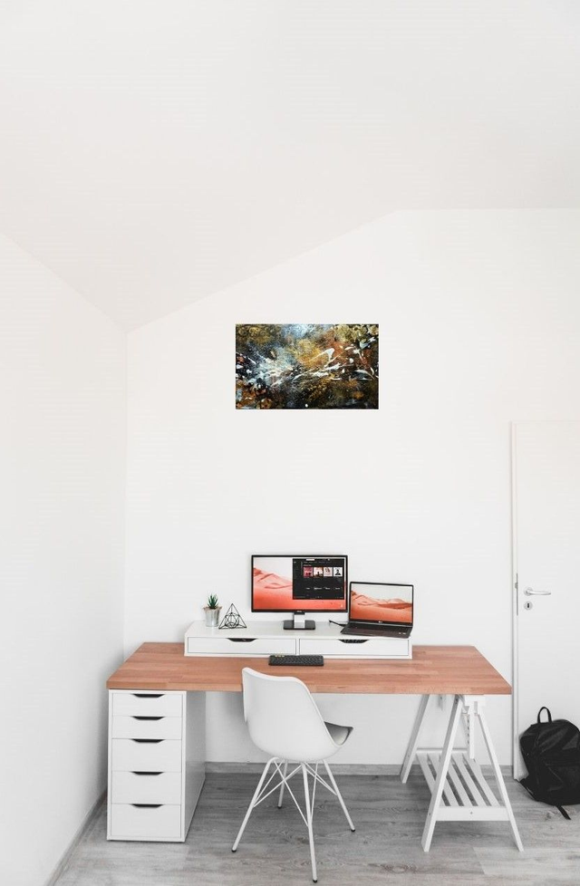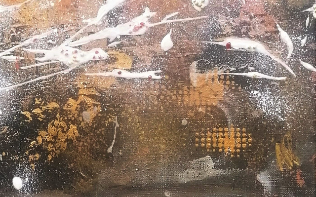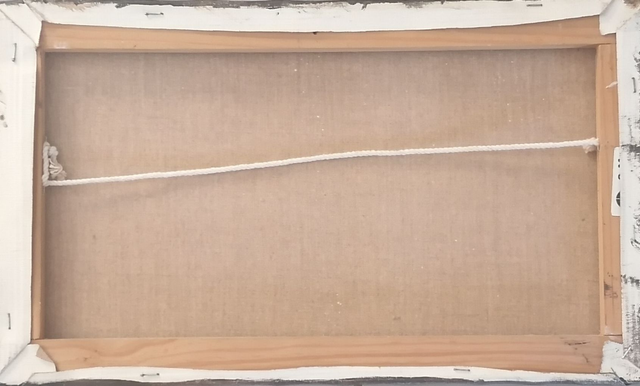 Toile sur châssis de 26x46 cm réalisée en technique mixte base acrylique (gel, encres...), finition vernis.