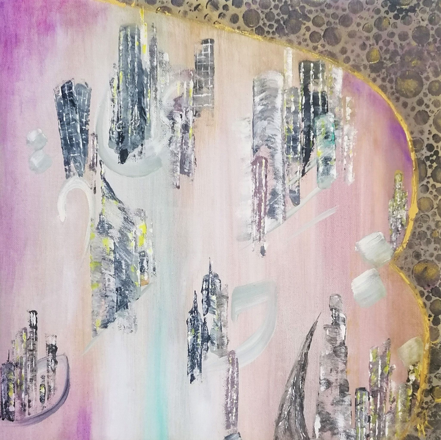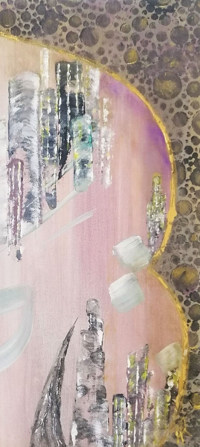 Acrylique sur toile tendue sur une planche de bois de 31x31x1 cm. Finition vernis.