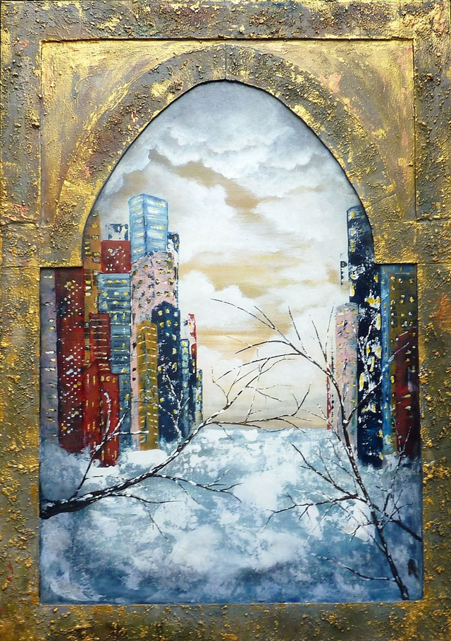 Acrylic and cardboard on 70x50 cm canvas stretcher. Varnish finish.