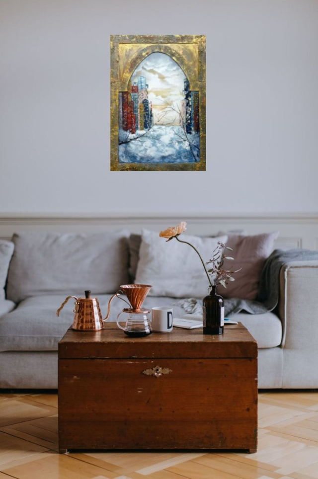 Acrylique et cartonnage sur chassis entoilé de 70x50 cm. Finition vernis.
