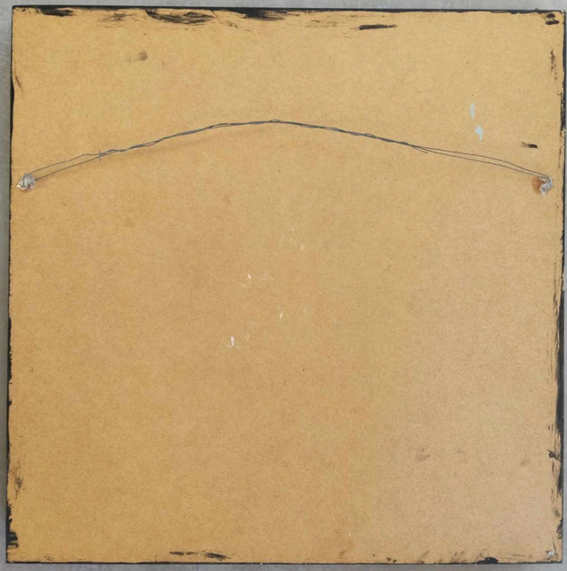 Acrylique sur toile marouflée dans un cadre américain en bois noir, finition vernis. Dimensions toile: 33.5x33.5 cm. Dimensions cadre: 38x38 cm.