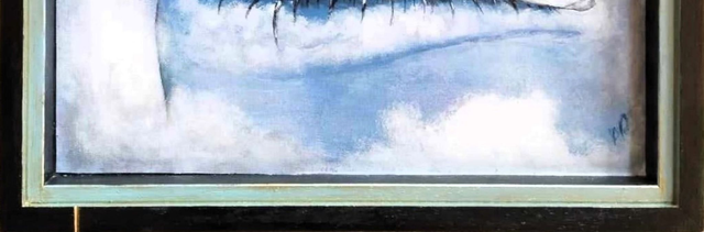 Acrylic on canvas mounted in an American black wood frame with varnish finish. Dimensions canvas: 33.5x33.5 cm. Frame size: 38x38 cm.