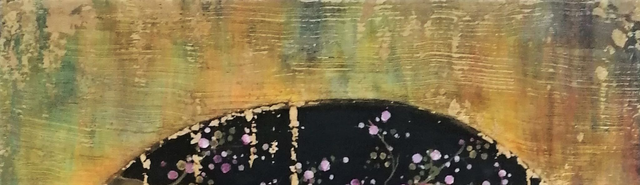 Toile sur chassis de 79.5x59.5cm, acrylique, résine sur la partie dorée, finition vernis. Encadrée dans cadre américain en bois blanc, taille finale 84x64