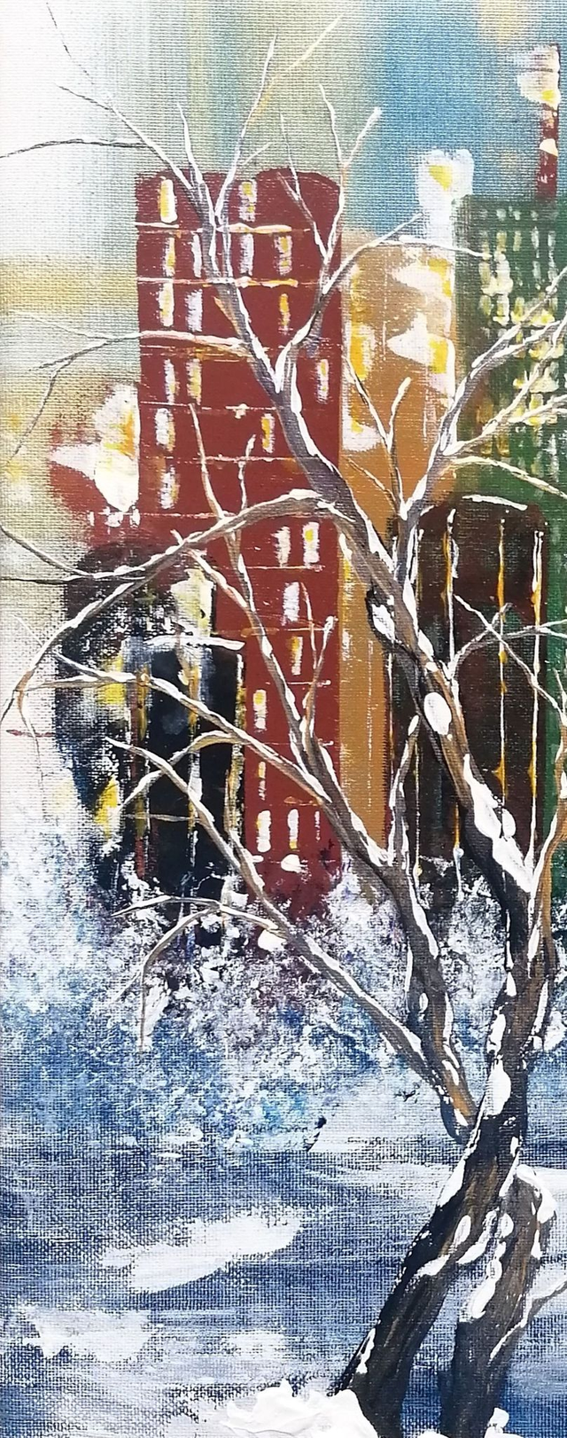 Acrylique sur toile tendue sur une planche de bois, 31x31cm. Finitions vernis.