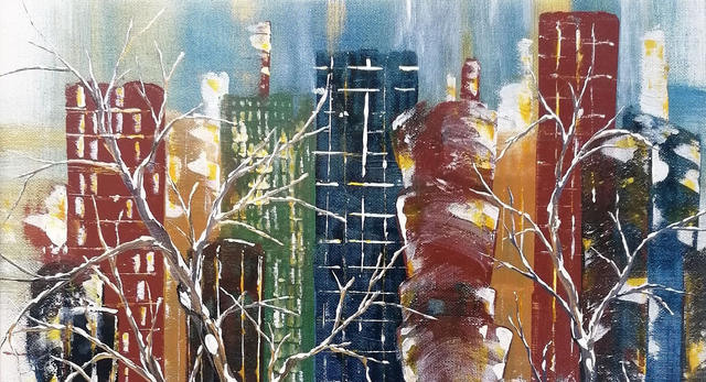 Acrylic on canvas stretched over a wooden board, 31x31cm. Varnish finish.