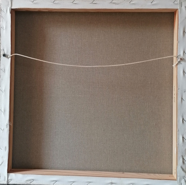 Acrylique sur châssis entoilé de 50x50x3 cm, feuille dorée. Finition vernis.
