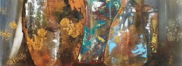 Acrylic on 50x50x3 cm canvas, gold leaf. Varnish finish.