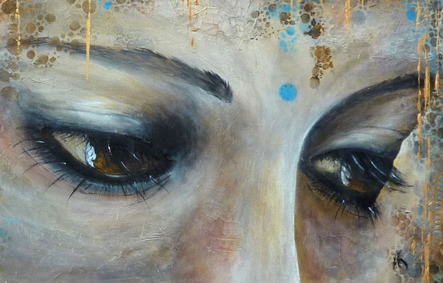 Toile sur chassis de 40x80 cm. Technique mixte base acrylique, avec des effets de matière et des reliefs, finition vernis.