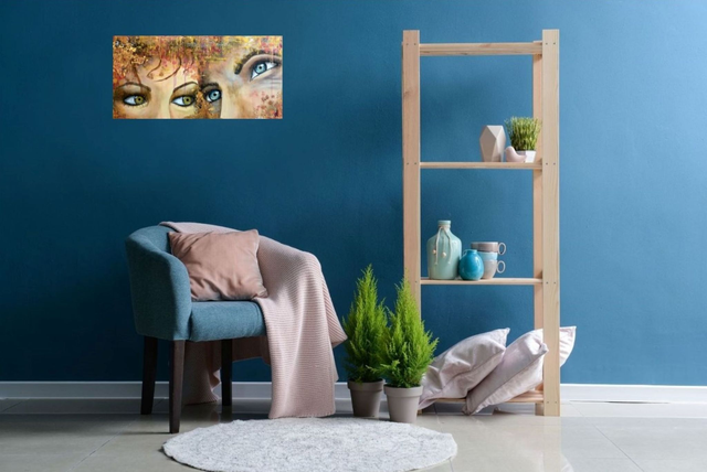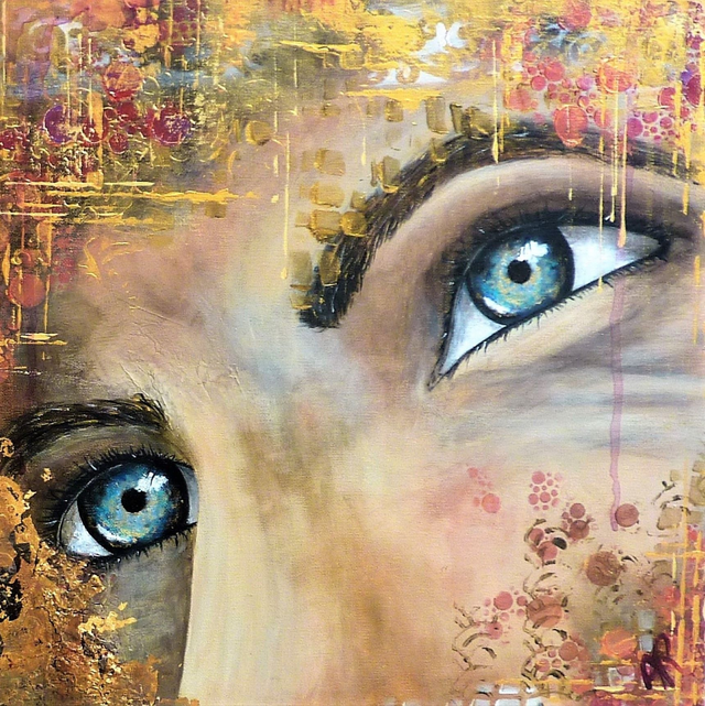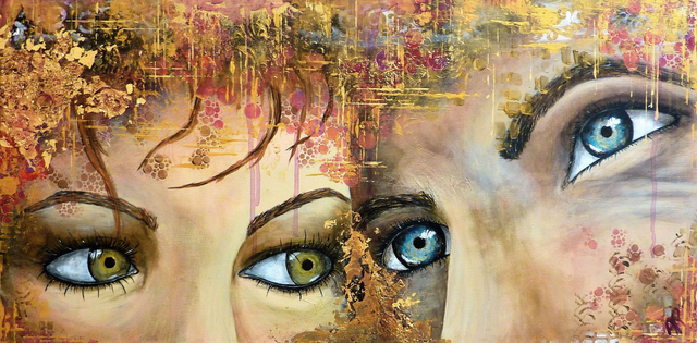 Mixed media on 40x80x3 cm canvas, reliefs, gold leaf, craquelures, with a varnish finish.