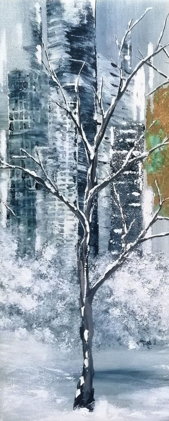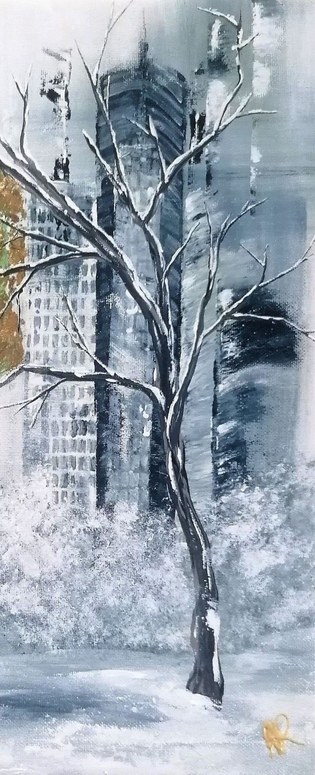 Acrylic and hand-oxidized gold leaf on canvas stretched over a 30x30 cm wooden board. Varnish finish.