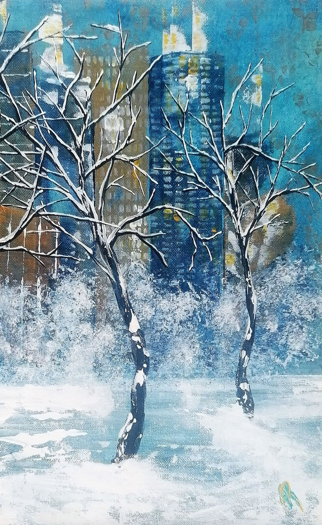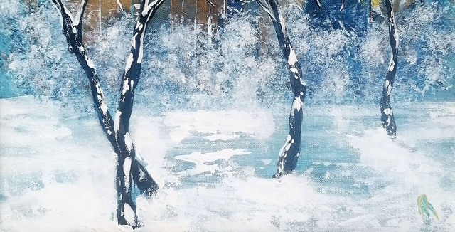 Acrylique sur toile tendue sur une planche de bois de 30x30 cm. Finition vernis.